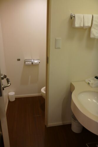 続いて水回り。 洗面所からお風呂とトイレにそれぞれ扉がついており、独立しています。 このホテルには大浴場があり、入湯税も徴収されるので、部屋風呂の稼働率は少ないかと思いますがしっかりできてます。 アメニティ。 資生堂のやつです。 部屋に戻って荷…
